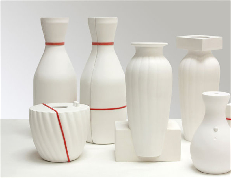 石膏注漿成型的模具通常在使用后就被丟棄。這些白色優(yōu)美剛?cè)岵?jì)的花瓶從模具中來(lái)并表達(dá)出通常不為人們所見(jiàn)的模具之美。